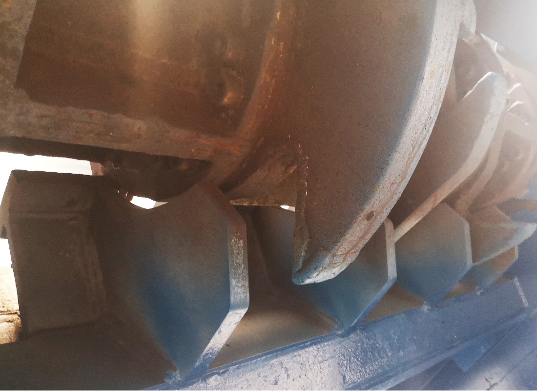 - Unité de broyage à 2 rotors de diamètre 660 mm et long de 2260 mm avec arbres acier surdimensionnés et outils de grande capacité broyant dans les 2 sens et remplaçables (fixation par vissage).